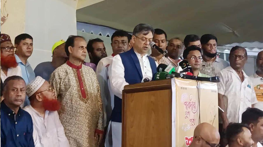 সোমবার (২৯ সেপ্টেম্বর) রাতে রাজধানীর ঢাকেশ্বরী শারদীয় দুর্গোৎসব উপলক্ষে বিএনপির পক্ষ থেকে সনাতন ধর্মাবলম্বীদের সঙ্গে শুভেচ্ছা বিনিময় অনুষ্ঠানে তিনি এসব কথা বলেন।