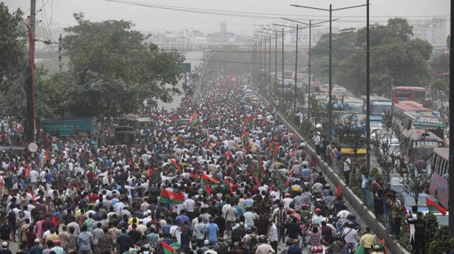 জিয়াউর রহমান, খালেদা জিয়া ও তারেক রহমানের ছবি প্রদর্শন করেন কেউ কেউ। এ সময় স্লোগানে উত্তাল হয়ে ওঠে রাজপথ।