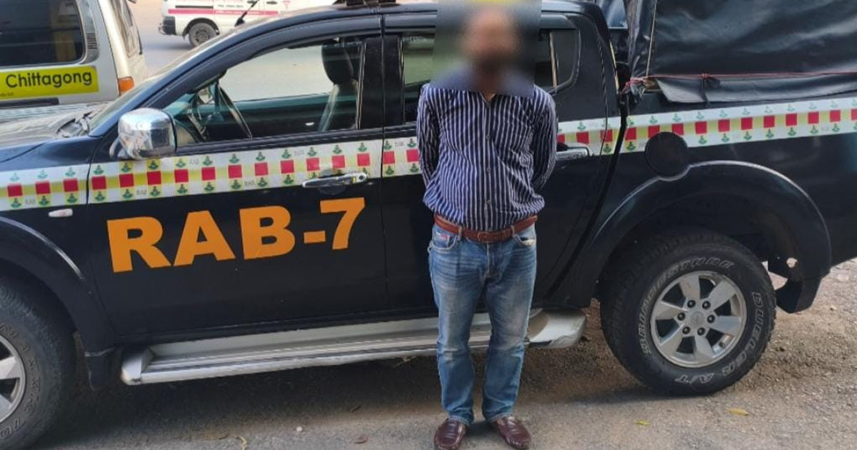 শনিবার (১৭ জানুয়ারি) নগরীর পাঁচলাইশ থানাধীন শোলকবহর এলাকা থেকে গ্রেপ্তার করা হয় বলে জানান র্যাব-৭ এর সিনিয়র সহকারী পরিচালক (মিডিয়া) এ. আর. এম. মোজাফ্ফর হোসেন।