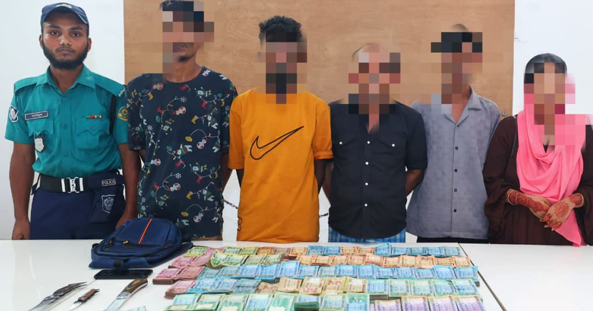 গ্রেপ্তারকৃতরা হলো- মো. সুমন (৩০), মো. আলী (৪৫), মো. রাকিব (৩২), মো. ফয়সাল (১৯) ও মোছাম্মৎ কাজল আক্তার (২১)।