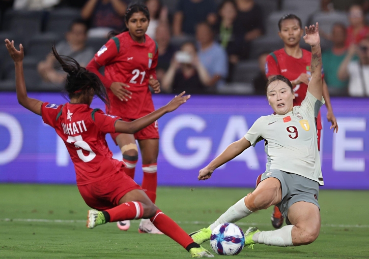 চতুর্থ মিনিটে বক্সের বাইরে থেকে লিউ জিংয়ের শট দূরের পোস্ট ঘেঁষে বাইরে যায়। ১২ মিনিটে বাঁ দিক থেকে ওয়াং সুয়াংয়ের শট ফিস্ট করে ফেরান রুপনার জায়গায় শুরুর একাদশে নামা গোলকিপার মিলি আক্তার। ফিরতি বলে চীনের আরেক খেলোয়াড়ের পাস থেকে ওয়াংয়ের হেড পোস্টের বাইরে লেগে বেরিয়ে যায়।