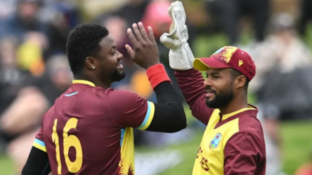 ওয়েস্ট ইন্ডিজ দল: শাই হোপ (অধিনায়ক), শিমরন হেটমায়ার, জনসন চার্লস, রোস্টন চেজ, ম্যাথু ফোর্ডে, জেসন হোল্ডার, আকিল হোসেন, শামার জোসেফ, ব্র্যান্ডন কিং, গুডাকেশ মোটি, রোভম্যান পাওয়েল, শেরফানে রাদারফোর্ড, কুইন্টন স্যাম্পসন, জেইডেন সিলস, রোমারিও শেফার্ড।