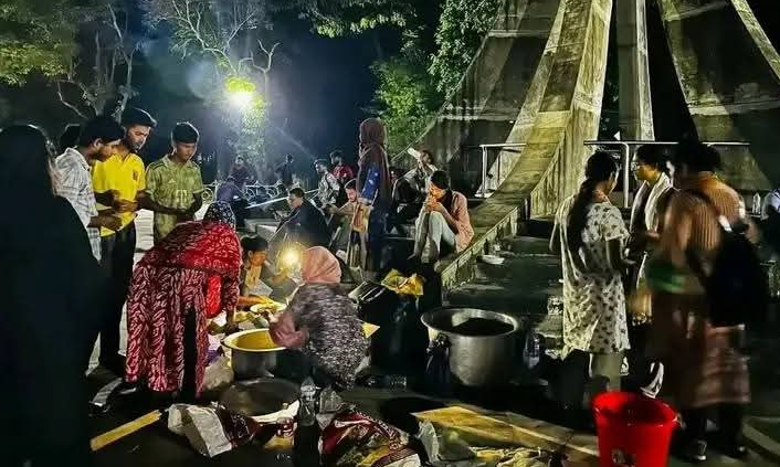 কারও মাথায় কোপের দাগ, কারও শরীর রক্তে ভিজে লাল। আতঙ্ক আর কান্নায় ভেসে যাচ্ছে সবুজ ক্যাম্পাসের চারপাশ। সঙ্গীরা হাসপাতালে ছুঁটছেন আহতদের নিয়ে, কেউ রিকশার পেছনে ঝুঁকে, কেউবা আবার অ্যাম্বুলেন্সে-বাসে চেপে। রক্ত ঝরছে অবিরাম, তাই কারও প্রয়োজন পড়ে রক্তের ফোটা। দিনভর সংঘর্ষ আর আহতদের নিয়ে ছোঁটাছুটির কারণে অনেকের পেটে পড়েনি কোনো দানাপানিও।