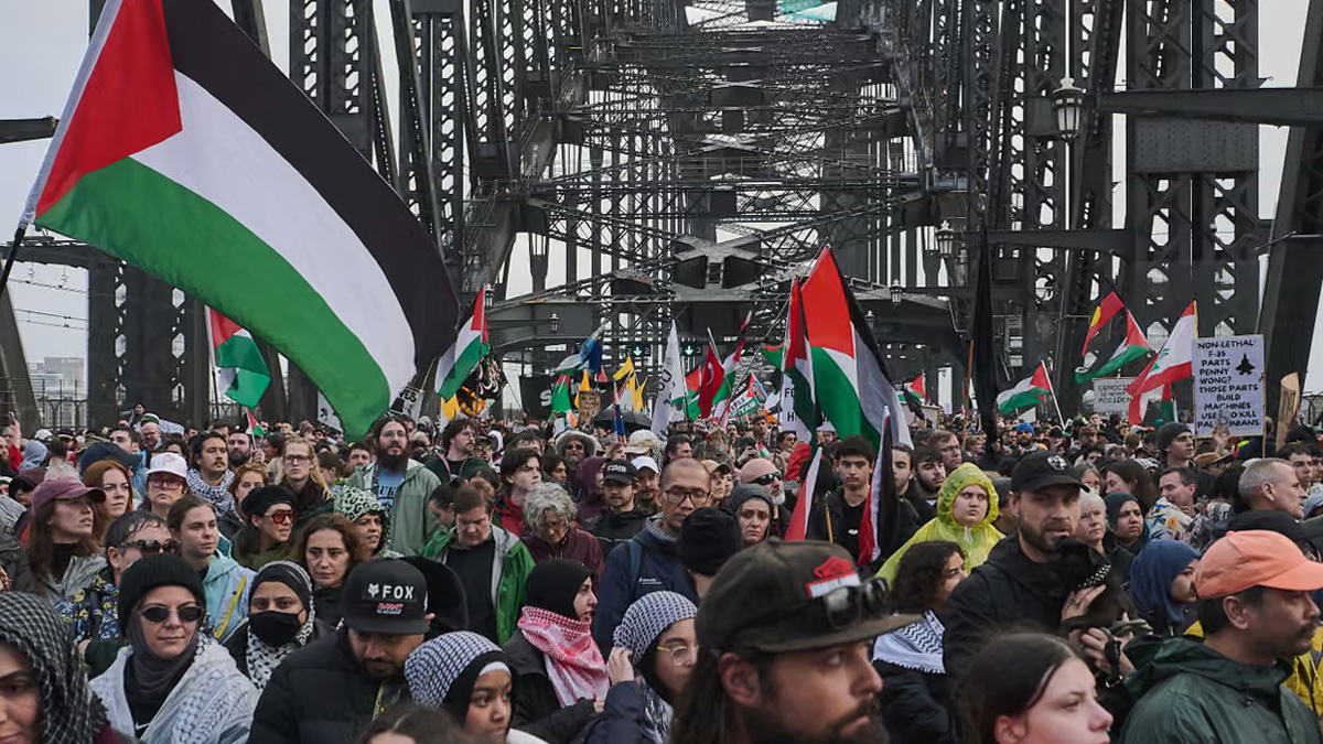 ফিলিস্তিনের গাজা উপত্যকায় চলমান ইসরাইলি আগ্রাসন বন্ধে ও ত্রাণ সরবরাহের আহ্বান জানিয়ে অস্ট্রেলিয়ার সুপরিচিত সিডনি হারবার ব্রিজে জড়ো হয়ে প্রতিবাদ জানিয়েছেন হাজার হাজার মানুষ। তাদের মুখে শোনা গেছে ফিলিস্তিনের পক্ষে স্লোগান আর ইসরায়েলের প্রতি তীব্র ক্ষোভ।