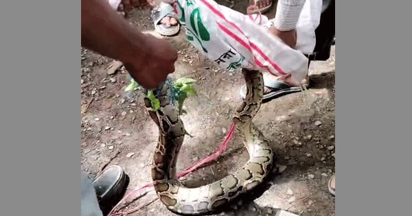 বান্দরবানের আলীকদমে কৃষকের জালে ধরা পরা ৭ ফুট লম্বা অজগর সাপটি মাতামুহুরী সংরক্ষিত বনাঞ্চলে অবমুক্ত করা হয়েছে।