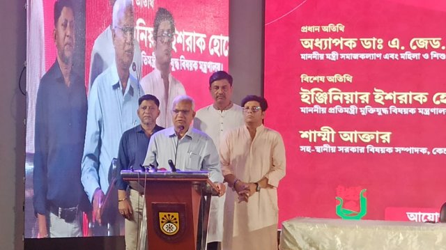 আলী শিবা শানুর সঞ্চালনায় আরও উপস্থিত ছিলেন মুক্তিযুদ্ধ-বিষয়ক প্রতিমন্ত্রী ইশরাক হোসেন, সহ-স্থানীয় সরকার বিষয়ক নির্বাহী কমিটির সদস্য শাম্মী আক্তার, গীতিকার ও সুরকার ইথুন বাবু এবং সাংস্কৃতিক ব্যক্তিত্ব খালেদ এনাম মুন্না।