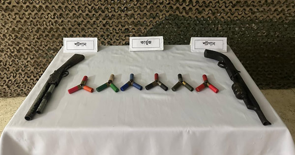 চট্টগ্রামের বোয়ালখালীতে জলদস্যুদের গোপন আস্তানায় পাওয়া গেছে দুইটি শর্টগান ও ১৮ রাউন্ড তাজা কার্তুজ।