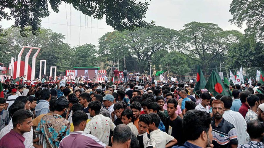 রবিবার (৩ আগস্ট) বিকাল সোয়া ৫টা নাগাদ রাজধানীর কেন্দ্রীয় শহীদ মিনারে আনুষ্ঠানিক সমাবেশ শুরু হয়। ইতোমধ্যে সমাবেশে যোগ দিয়েছেন সংগঠনটির আহ্বায়ক নাহিদ ইসলাম ও সদস্য সচিব আখতার হোসেনসহ কেন্দ্রীয় নেতারা।