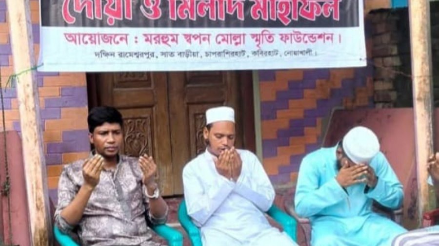 এর আগে, একই দিন বিকাল সোয়া ৫টার দিকে উপজেলার চাপরাশিরহাট ইউনিয়নের ৯ নম্বর ওয়ার্ডের সাত বাড়িয়া এলাকার মরহুম ছাত্রলীগ নেতা স্বপন মোল্লার বাড়িতে এ মিলাদ ও দোয়া মাহফিল অনুষ্ঠিত হয়। সাবেক ছাত্রলীগ নেতা স্বপন মোল্লা স্মৃতি ফাউন্ডেশনের ব্যানারে একই ওয়ার্ডের সাত বাড়িয়া ছাত্রলীগ-যুবলীগ এই কর্মসূচির আয়োজন করে।
