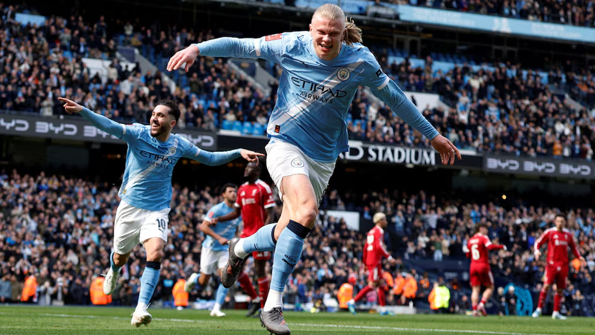 কোয়ার্টার ফাইনালে ম্যাচের ৩৮ মিনিট পর্যন্ত গোলরক্ষক জর্জি মামারদাশভিলির পোস্টে তেমন হুমকি তৈরি করতে পারেনি সিটি। তবে ওই সময়েই পেনাল্টি থেকে গোল করে দলকে এগিয়ে নেন হাল্যান্ড। নিকো ও’রাইলিকে ফাউল করে বসেন ভার্জিল ফন ডাইক। তাতে পেনাল্টি পায় সিটি। প্রথমার্ধের শেষ মুহূর্তে যোগ হওয়া সময়ে ব্যবধান দ্বিগুণও করেন হাল্যান্ড।